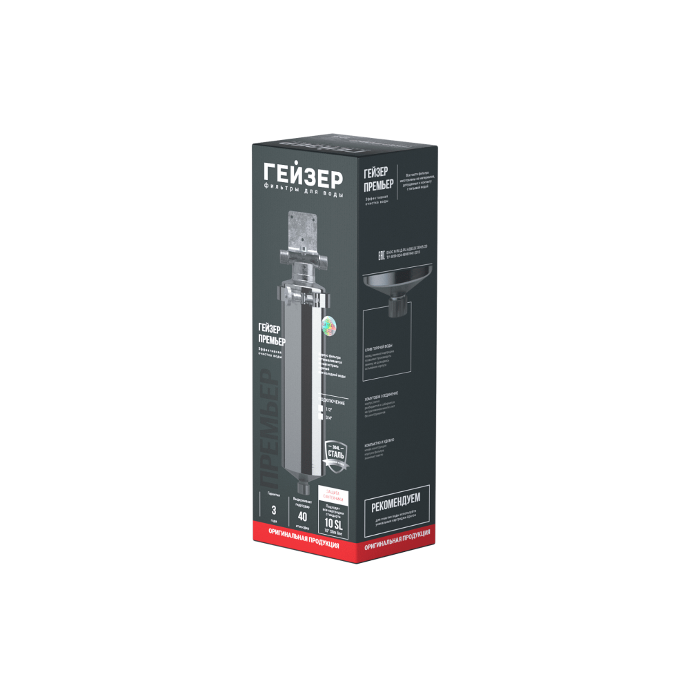 Гейзер-Премьер 10SL 1/2" устанавливается на вход в систему горячего или холодного водоснабжения. Корпус фильтра изготовлен из высококачественной нержавеющей стали марки 304L, устойчивой к возникновению коррозии, что гарантирует высокую надежность и многолетнюю работу фильтра.