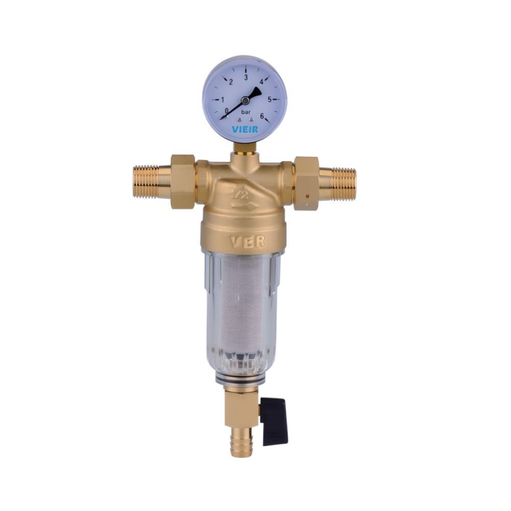 Фильтр самоочищающийся с манометром 1" для холодной воды VIEIR