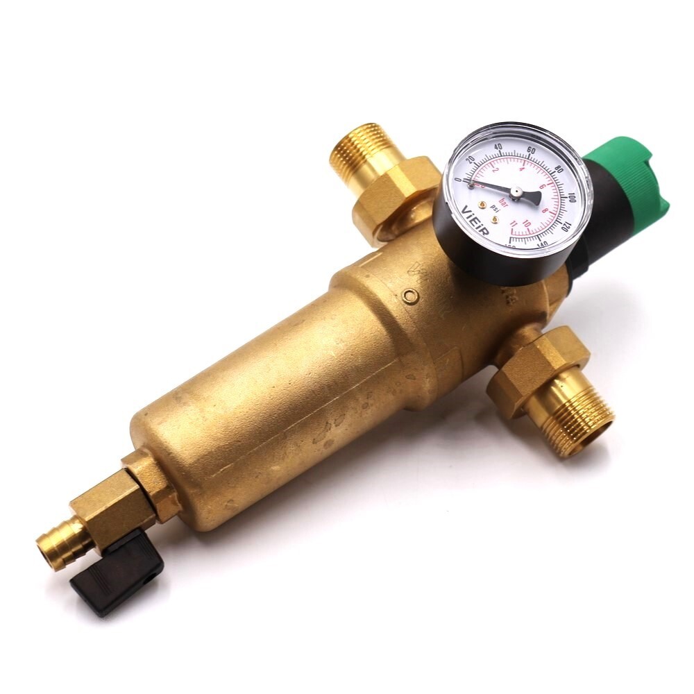 Фильтр самоочищающийся с редуктором давления и манометром 3/4" для горячей воды VIEIR