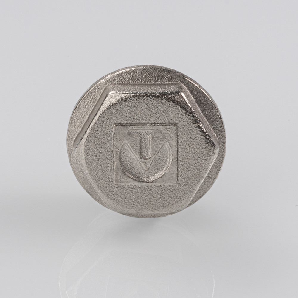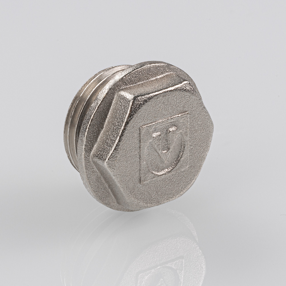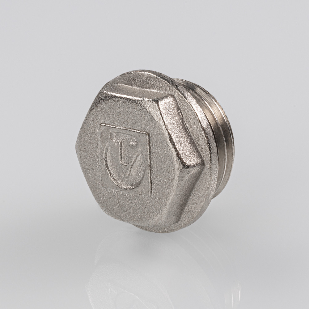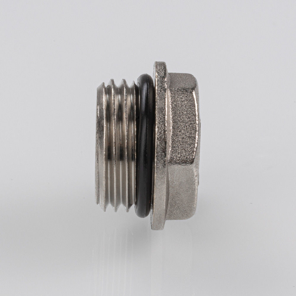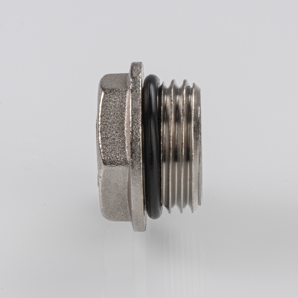 Пробка выполнена из латуни, никелирована и комплектуется уплотнительной прокладкой из EPDM. Резьба – наружная, без насечек.