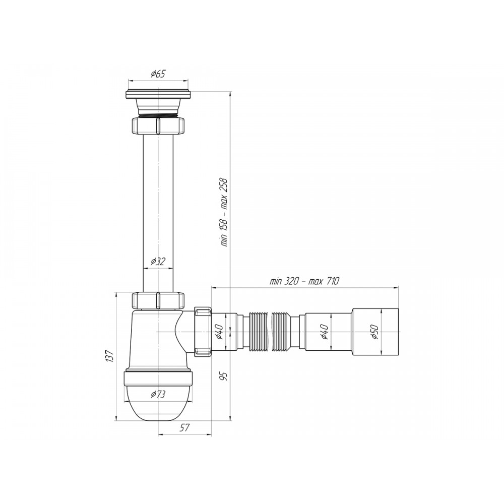 Полное наименование: Сифон Ани 1.1/4"х40 с гибкой трубой 40х40/50