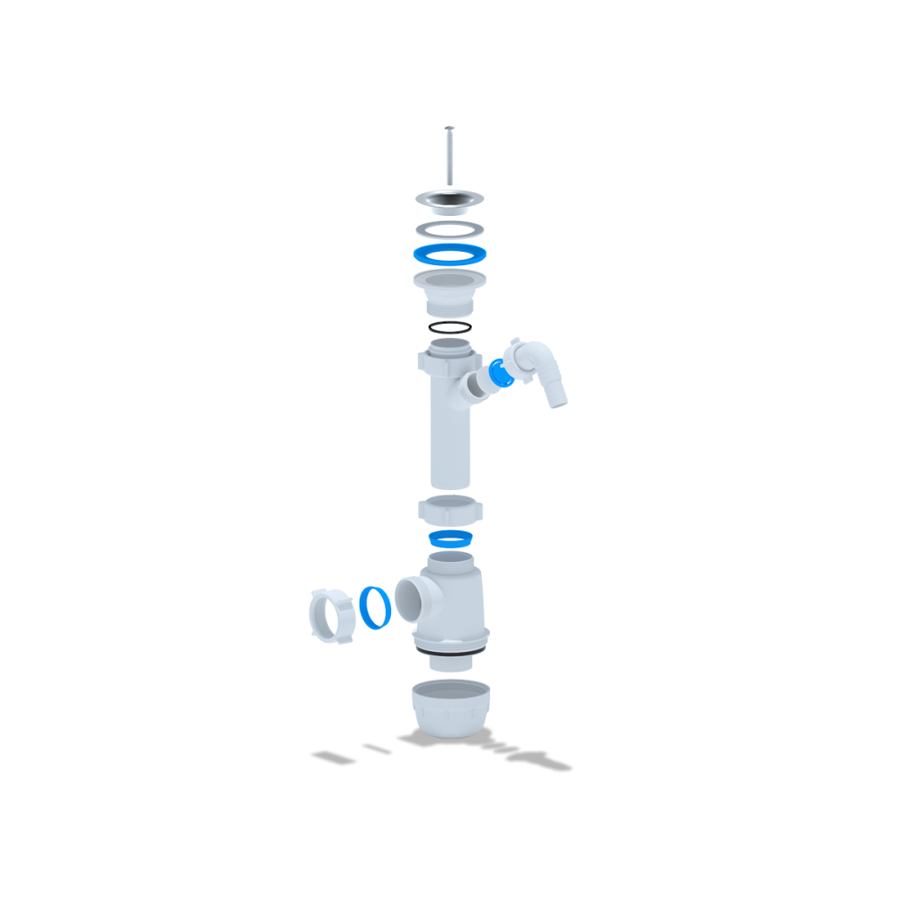 - ✓ Стандартные размеры делают сифон универсальным решением для большинства кухонных моек.