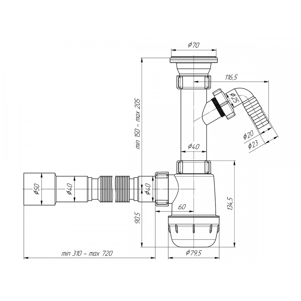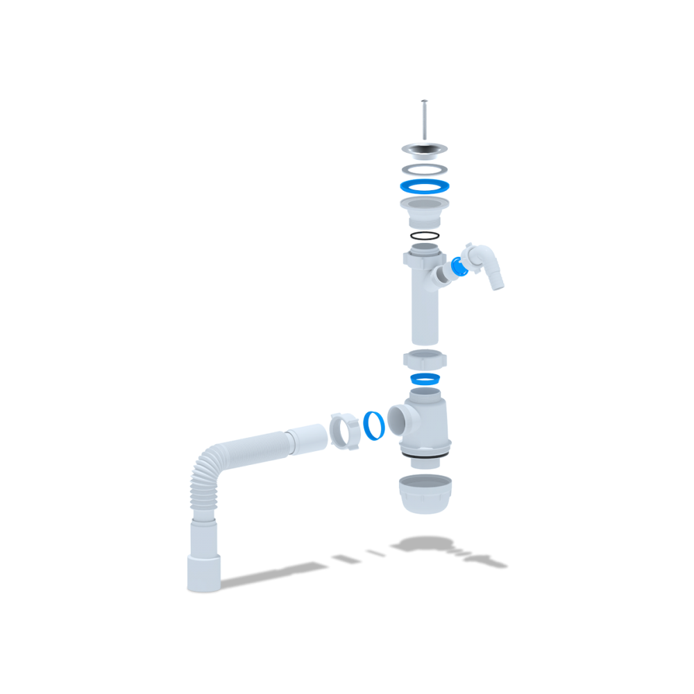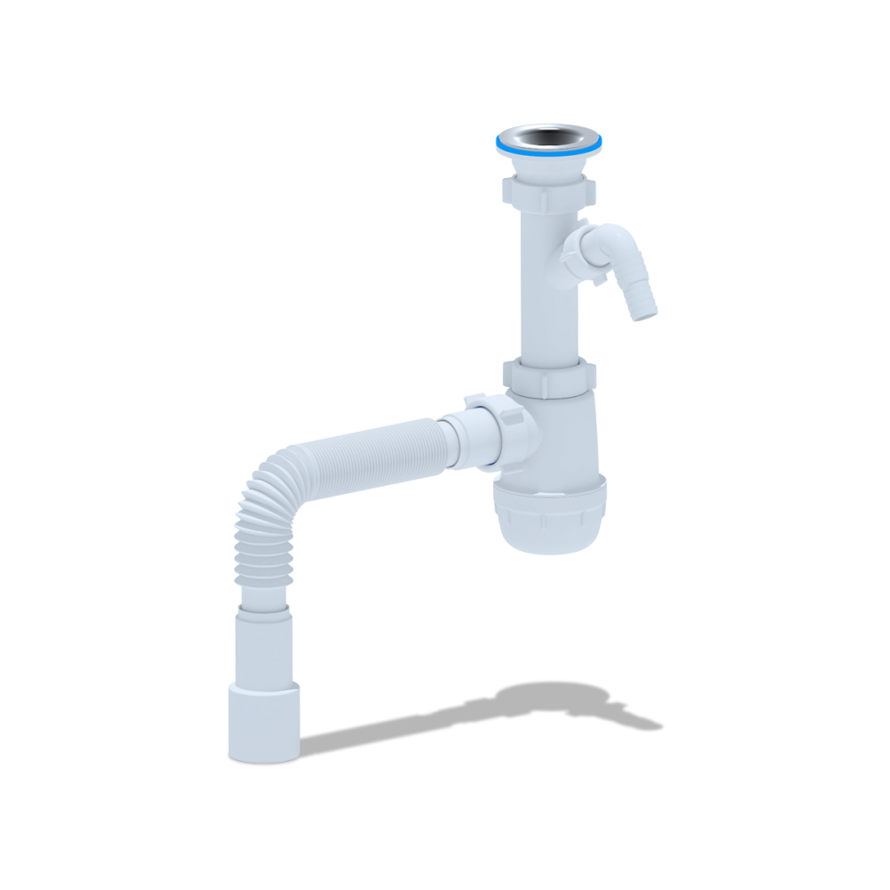 - ✓ Гибкая труба облегчает установку и позволяет адаптировать сифон под особенности монтажа, обеспечивая надёжное соединение.