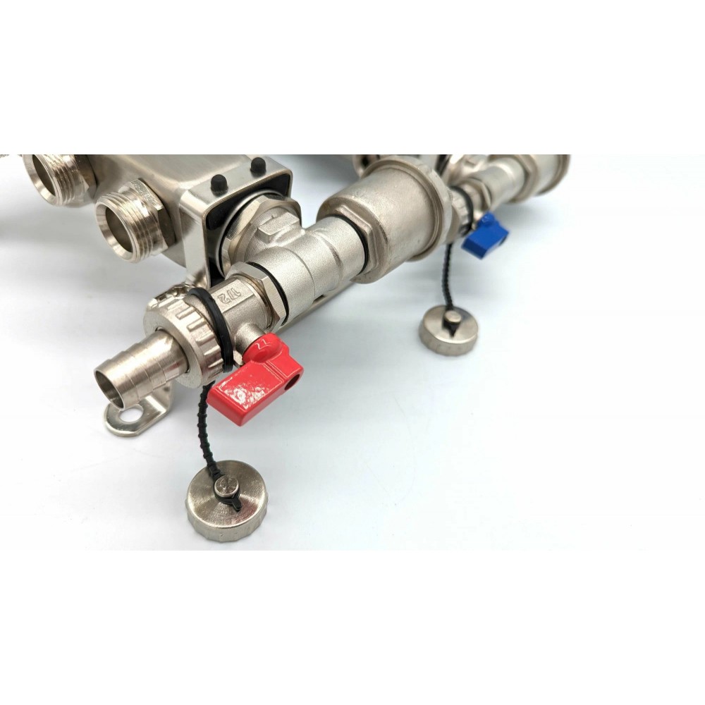 • ✓  Коллекторный блок с диаметром 1" и 11 выходами под евроконус 3/4" (НР) для распределения теплоносителя по контурам и обратного его сбора.