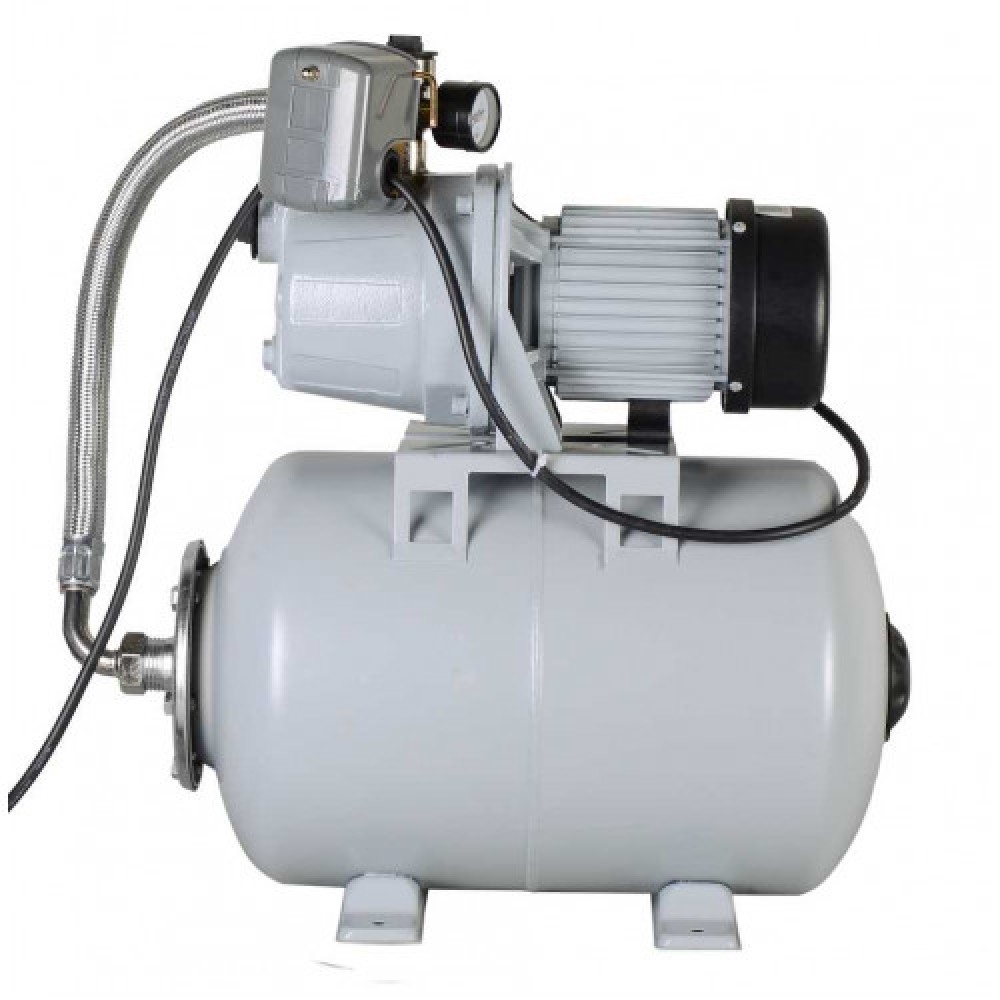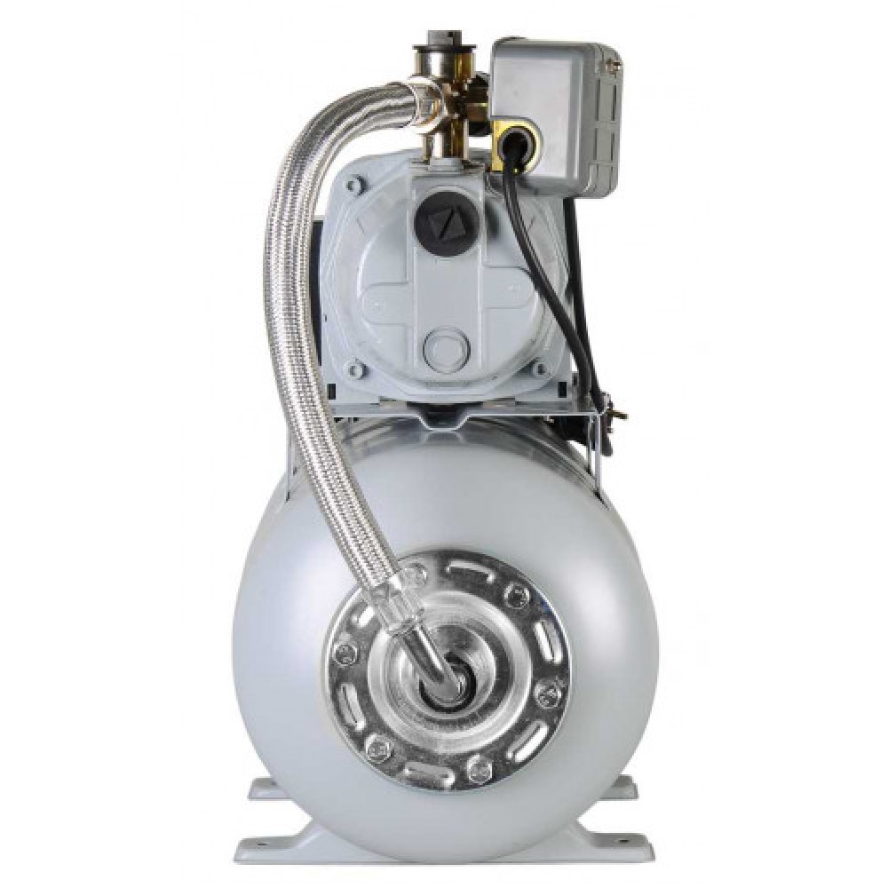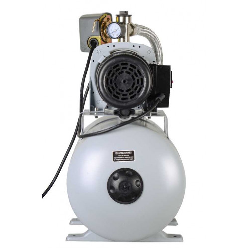 Гидроаккумулятор 24 л работает как буфер, а чугунный корпус насосной части применен в конструкции модели; станция самостоятельно включается и отключается по мере разбора воды.