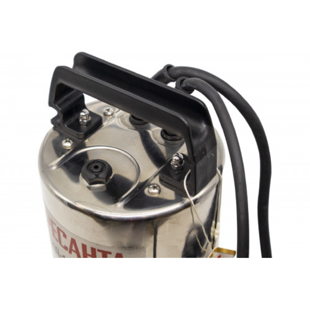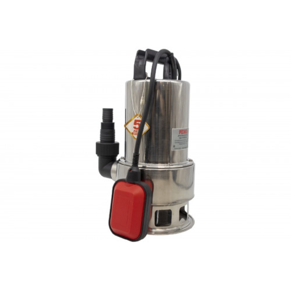Модель рассчитана на работу с грязной водой и пропускает частицы диаметром до 35 мм; максимальный напор - до 10 м. Корпус выполнен из нержавеющей стали.