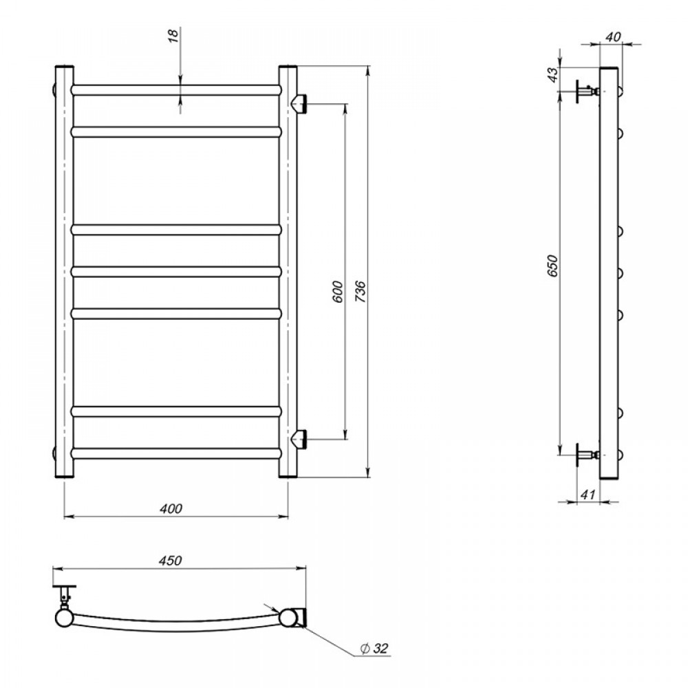 Полотенцесушитель MELODIA Classica 40*80*1" П7 м/о 60 бок.подкл.
