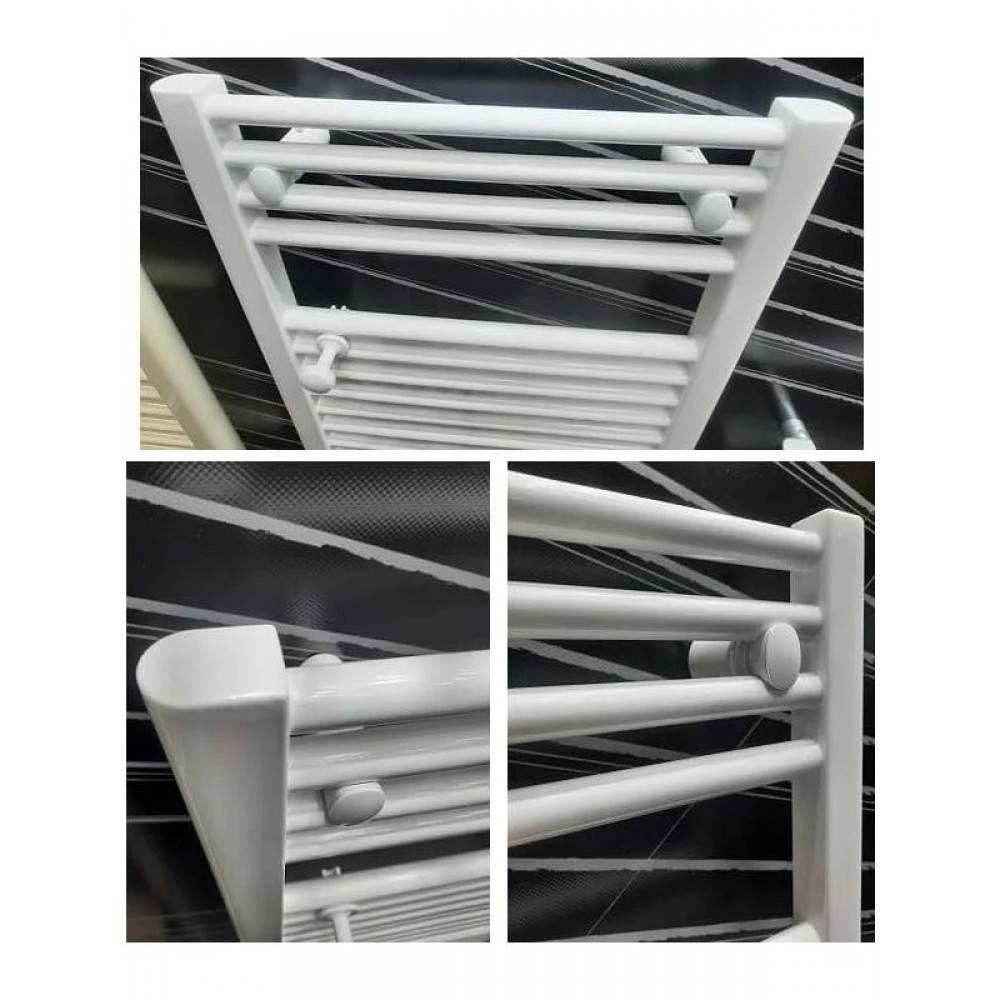 Электрический полотенцесушитель выполнен в современном дизайне и представлен в белом цвете. Устройство предназначено для быстрого и равномерного прогрева ванной комнаты, сушки полотенец и белья. Подходит для любых типов помещений, включая квартиры и частные дома.