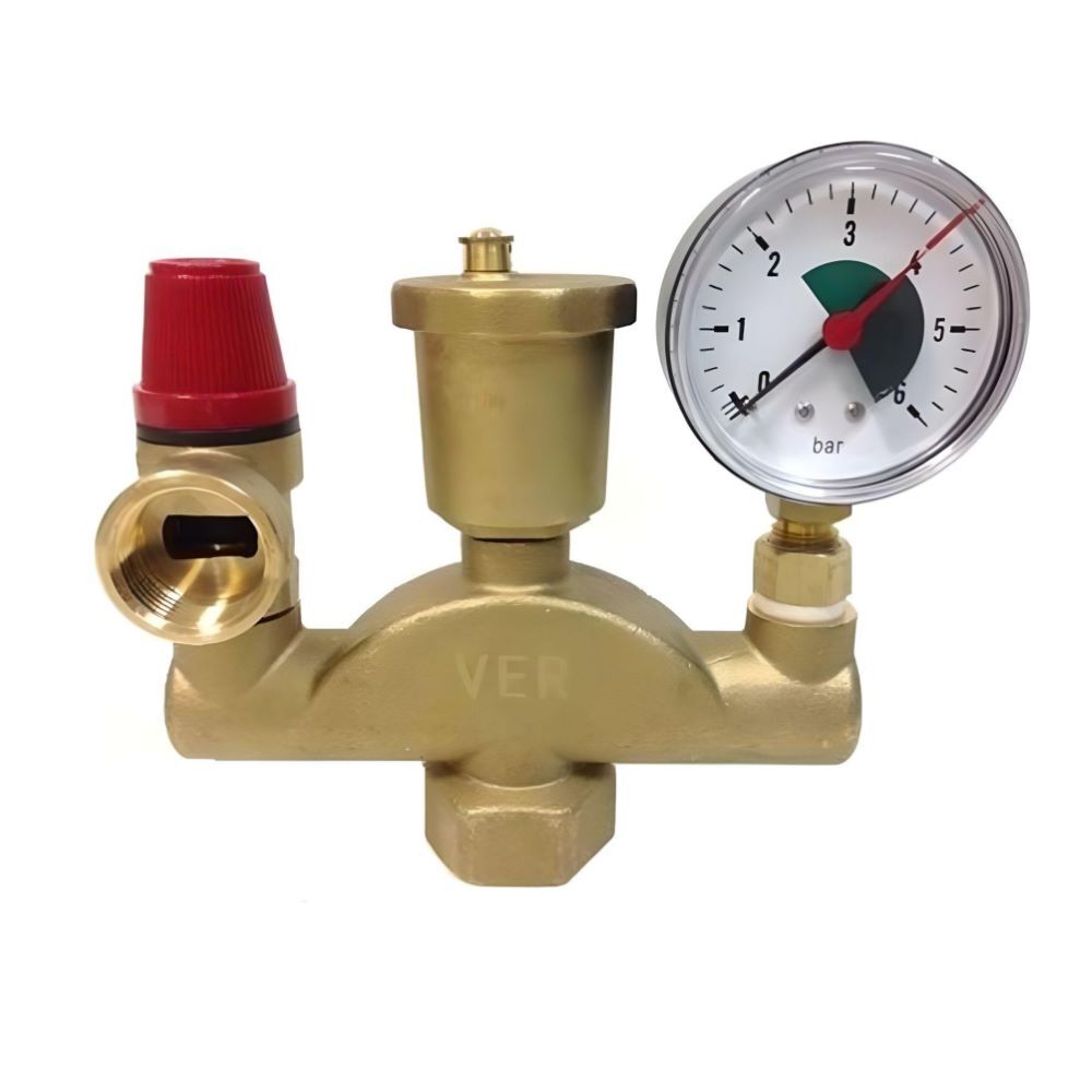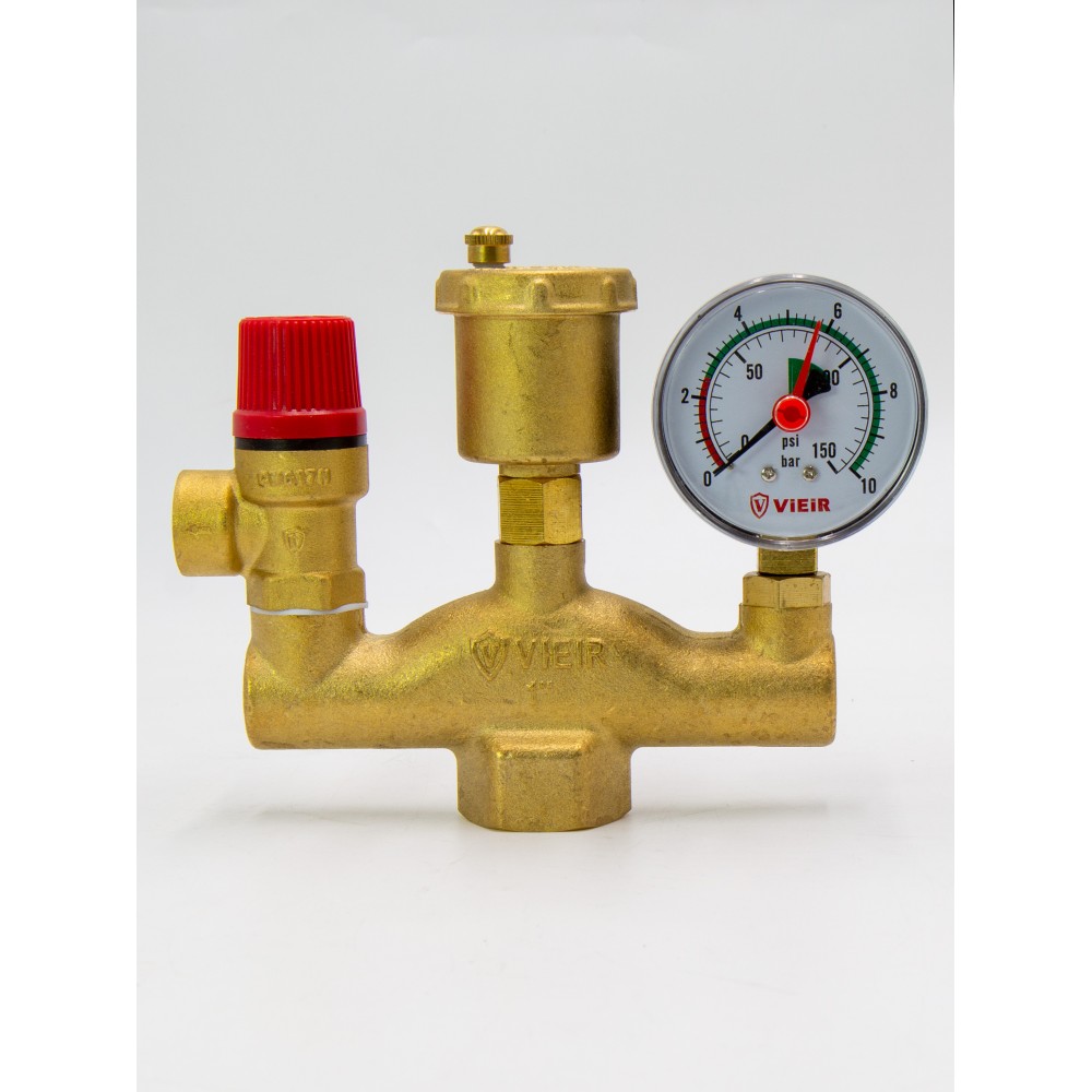 Группа безопасности котла VIEIR AQ1063 1" 3 бар применяется в закрытых системах отопления и служит для защиты и контроля работы котлов мощностью до 100 кВт.