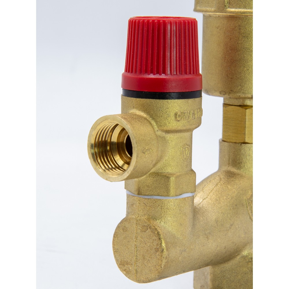- ✓ Предохранительный клапан автоматически срабатывает при давлении 3 бар, предотвращая повреждение котла и трубопроводов