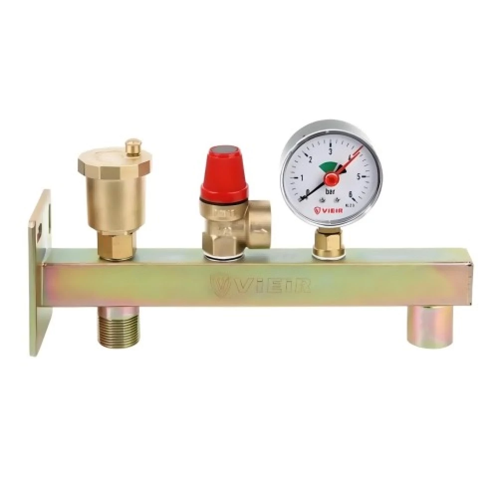 Настенная группа безопасности мембранного бака VIEIR AQ1058 3/4" 3 бар устанавливается на выходе из котла и защищает систему отопления от избыточного давления, одновременно обеспечивая подключение расширительного бака.