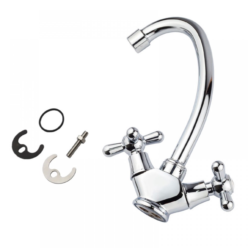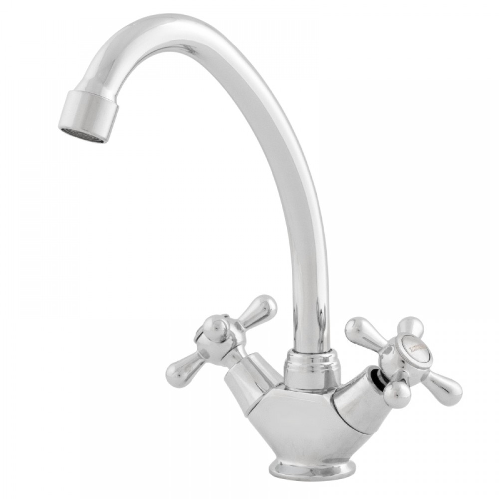 Поворотный трубчатый излив оптимально подходит для обслуживания кухонной мойки, а глянцевое хромированное покрытие завершает эстетичный вид изделия.