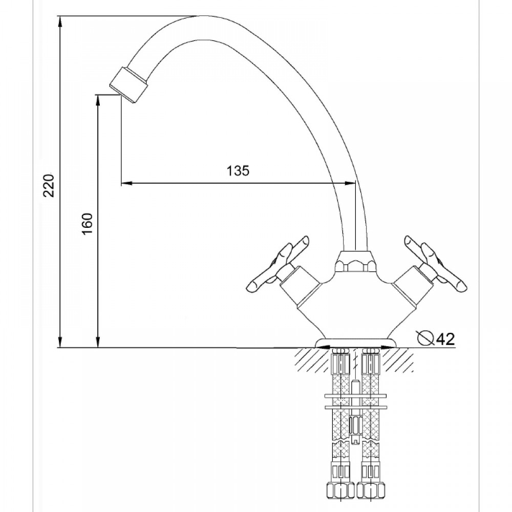 • ✓  Смеситель двухвентильный