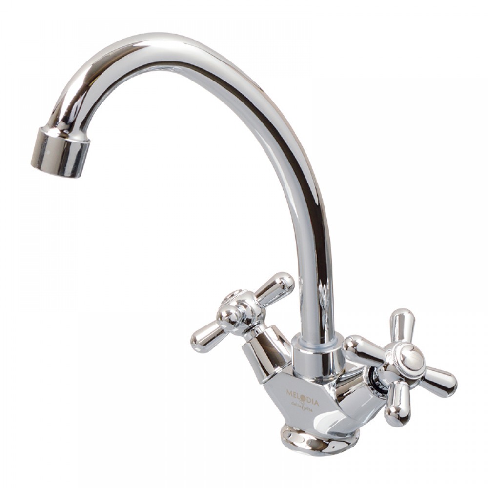 Двухвентильный смеситель для кухни MELODIA Cross MDV32505 — это сантехнический прибор, выполненный в выразительном ретро-дизайне с классическими крестообразными маховиками. Традиционная двухзахватная архитектура позволяет максимально точно настраивать желаемую температуру, смешивая горячую и холодную воду вручную.