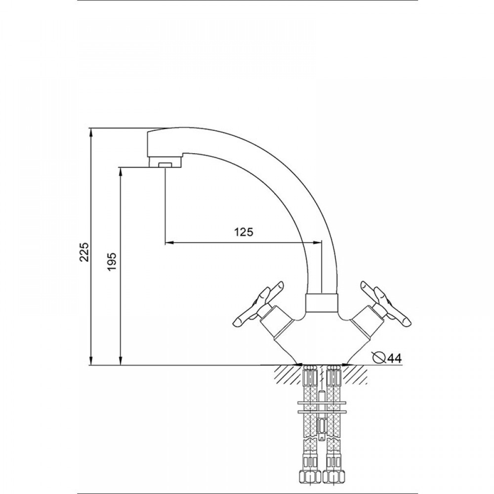 Двухвентильный смеситель для кухни MELODIA Retro MDV32310 отличается прочным литым поворотным изливом и крестообразными ручками управления. Классический кухонный кран создан для раковин и моек, где важен традиционный дизайн и высокая надежность металлических элементов.