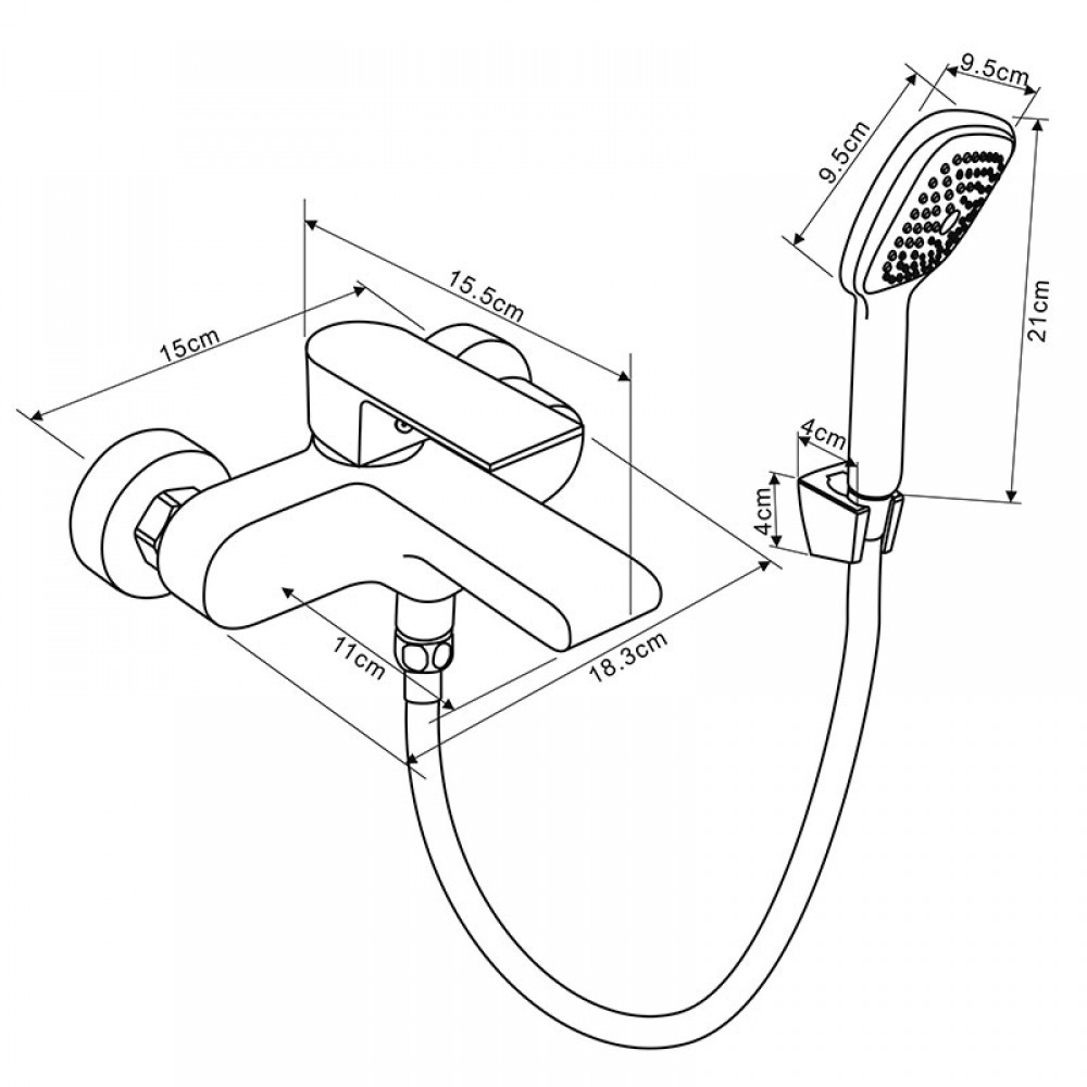 Устройство укомплектовано ручной душевой лейкой и гибким шлангом. Настенный монтаж оборудования осуществляется стандартно, с применением эксцентриков и декоративных отражателей, маскирующих места соединения с трубами.